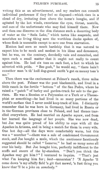 Old Camp Grant on the Rio San Pedro | Daily Routine of Life | Architecture of the Gila | Soldiers as Laborers | The Mescal and its Uses | Drink and Gambling | Rattlesnake Bites and The Golondrina Weed | Soda Lake and the Death Valley | Felmer and His Ranch |