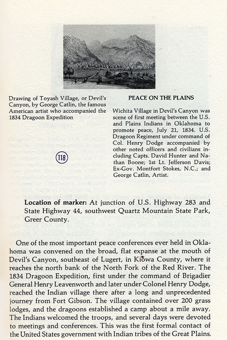 Chief Bugler's GraveLocation of Marker: On grounds between Quartz Mountain Lodge and Lake Altus, Quartz Mountain State Park, Kiowa County. This is the grave site of William Gruber, the chief bugler of the Nineteenth Kansas Cavalry, who was accidentally killed on March 5, 1869, while the regiment was bivouacked nearby. The above information is from the book, Mark of Heritage, by Muriel H. Wright, courtesy of Oklahoma Historical Society. |
